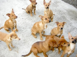私たちは、「幻の縄文犬」を思わせる顔貌をした最高の犬を猟犬として、全国に改良されていった「屋久島犬」ではなく、親しみを込めて「屋久犬」(Yakken ヤッケン・ヤクッケン)」と呼び、一般家庭のペットにふさわしい˝パートナー˝となるよう、親犬、兄弟犬に囲まれれた環境で、優良な素質を持った繁殖訓練に努めております。